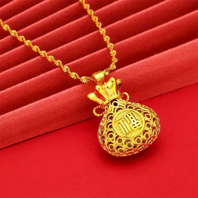 Vintage Gold-Plated Brass Filigree Money Bag Pendant Necklace