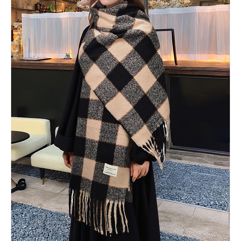 Winter Plaid Printed Pashmina Scarf Tassel Shawl Woman Warmer Wraps Outdoor Windproof Muffler Cashmere Like Scarves