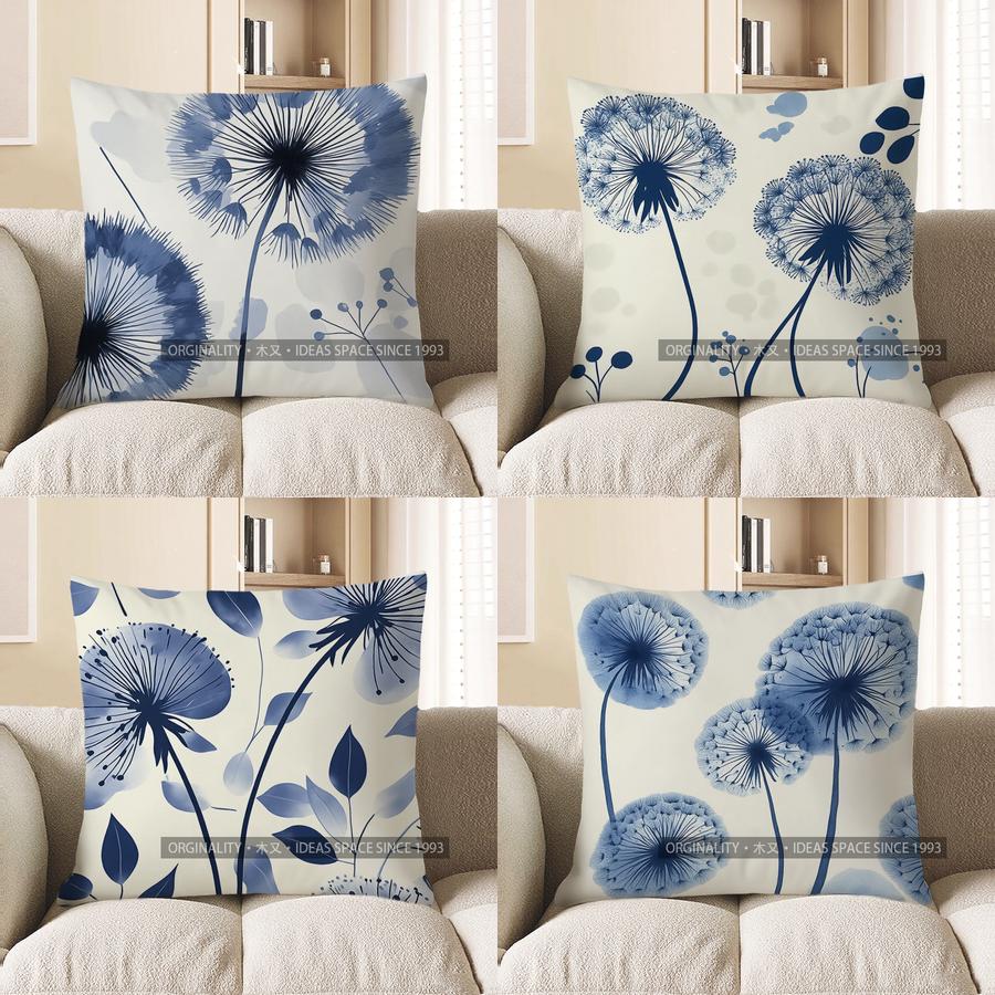 Home Decor Blue Dandelion Pattern Decorative Pillow Cover Pattern Cushion Cover Suitable For Sofa Bedroom Car Pillow Cover