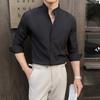 Spring Chinese Style High End Stand Up Collar Shirt Men's Long Sleeve Elastic Slimming Social Dress Shirt