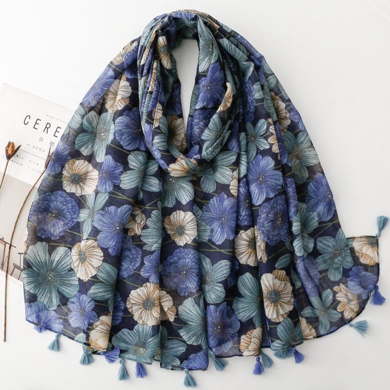 Spring Fashion Retro Poppy Floral Tassel Viscose Shawls Scarf Women High Quality Soft Hijab And Wrap Muslim Sjaal 180*90Cm