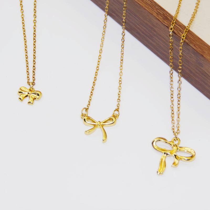 Elegant Bow Necklace: Women's Classic Stainless Steel Clavicle Chain