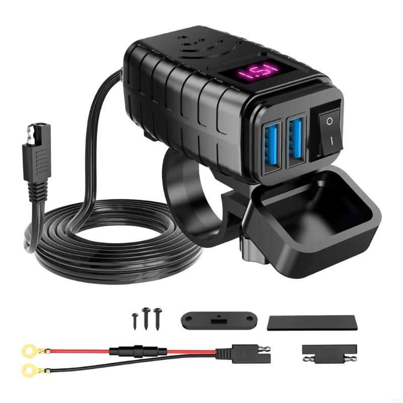 28GC Double USB QC3.0 Chargers with Display Switches ABS Motorcycle Accessories Waterproof Easy Install Charging Socket