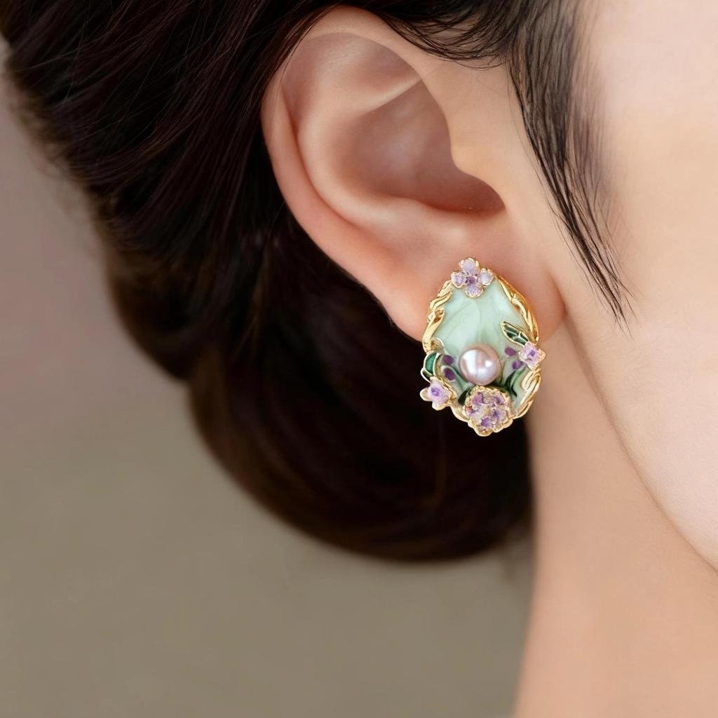 Miki 2025 Autumn/Winter Retro Floral Pearl Earrings for Women