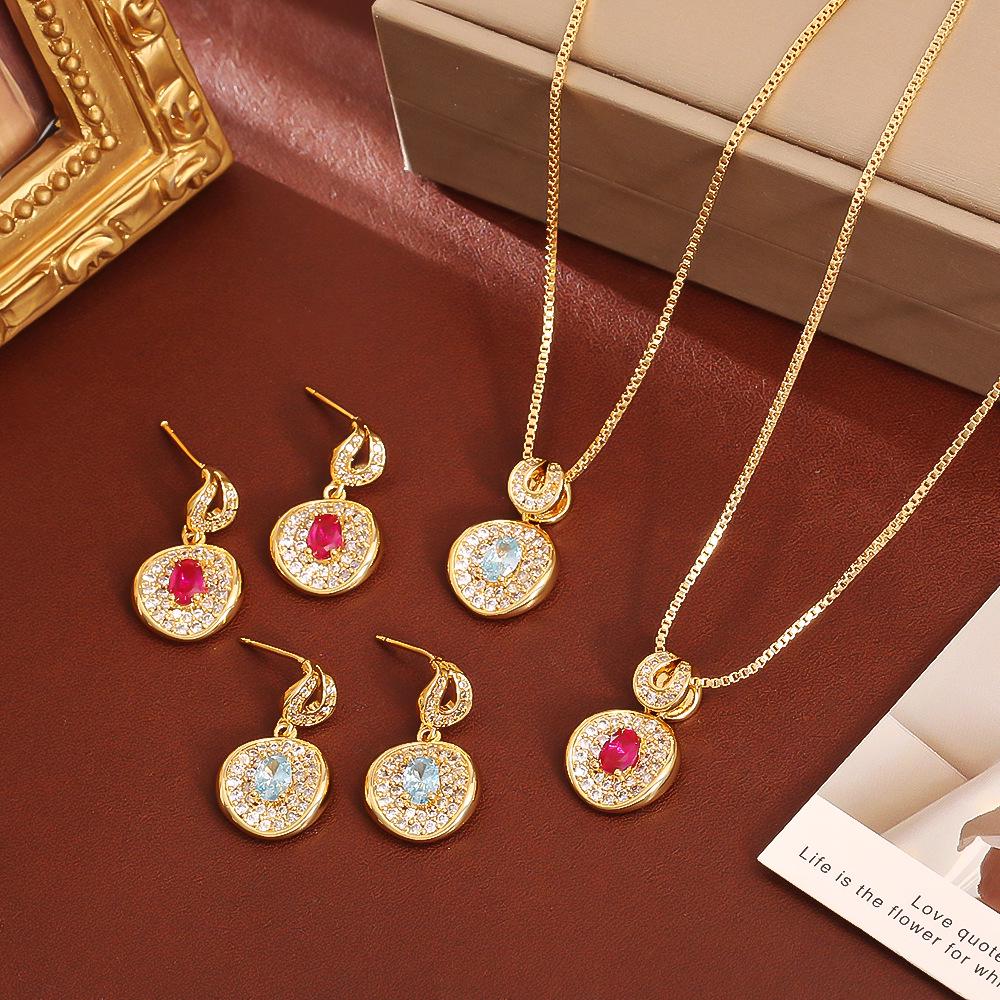 Zircon Pendant Necklace & Gold-Plated Earrings Set - Fashionable Goddess Style