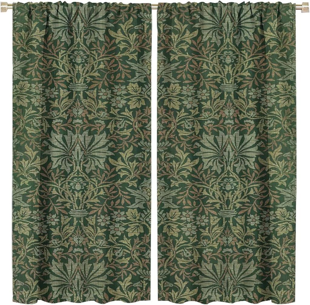 Bohemia Art Blackout Window Curtains William Morris Original Design Green Garden Vintage Curtains for Living Room Bedroom 21(W