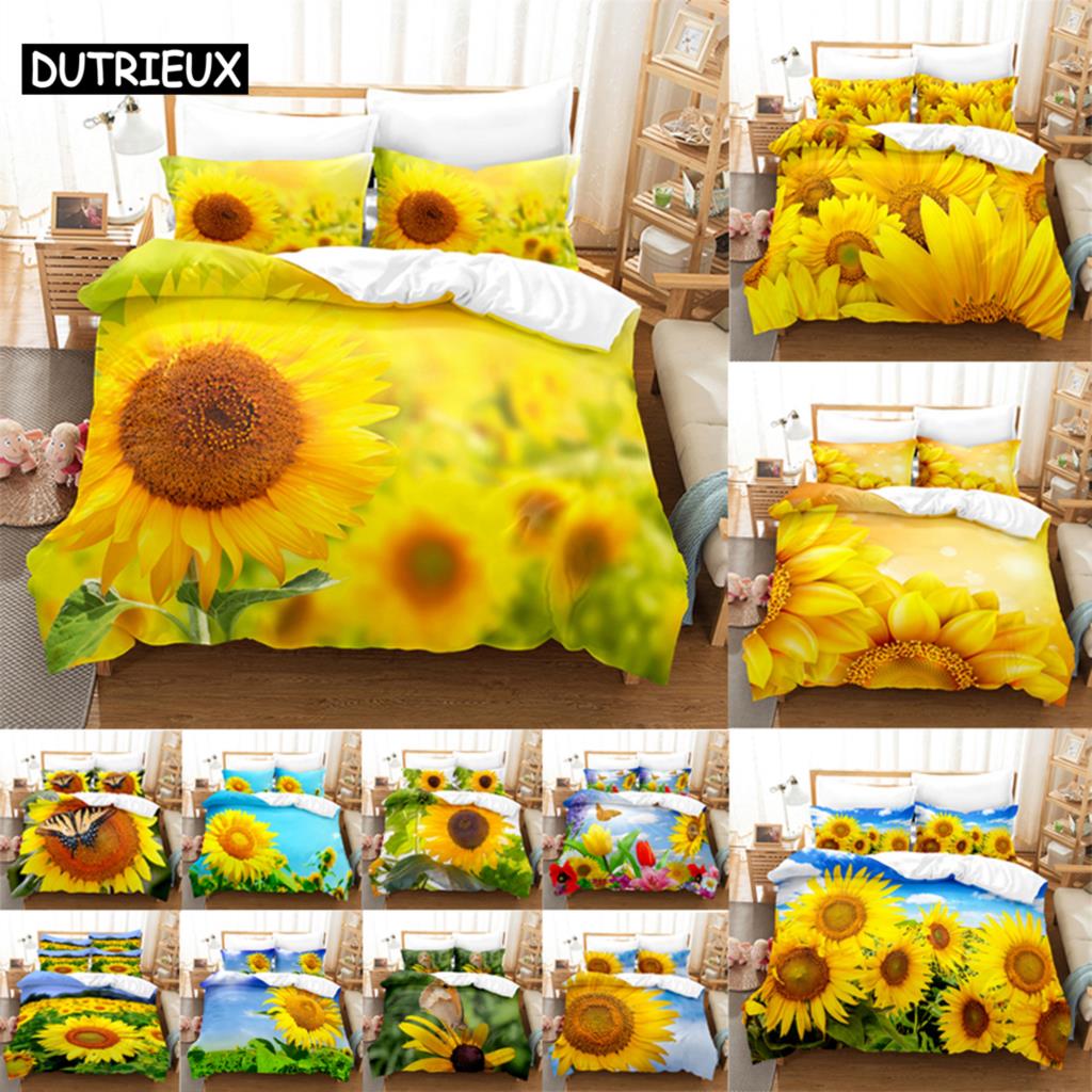 Floral Quilt Cover Queen Size Sunflower Duvet Cover 3D Bedding Set 3Pcs 2Pcs With Pillowcase King Full Twin Single Double Beds