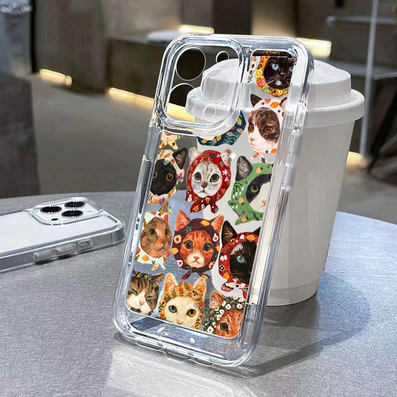 Cat Pattern Transparent TPU Shockproof Bumper Phone Case For iPhone 16E 16 15 14 13 12 11 Pro Max XS X 7 8 PLUS SE Cover