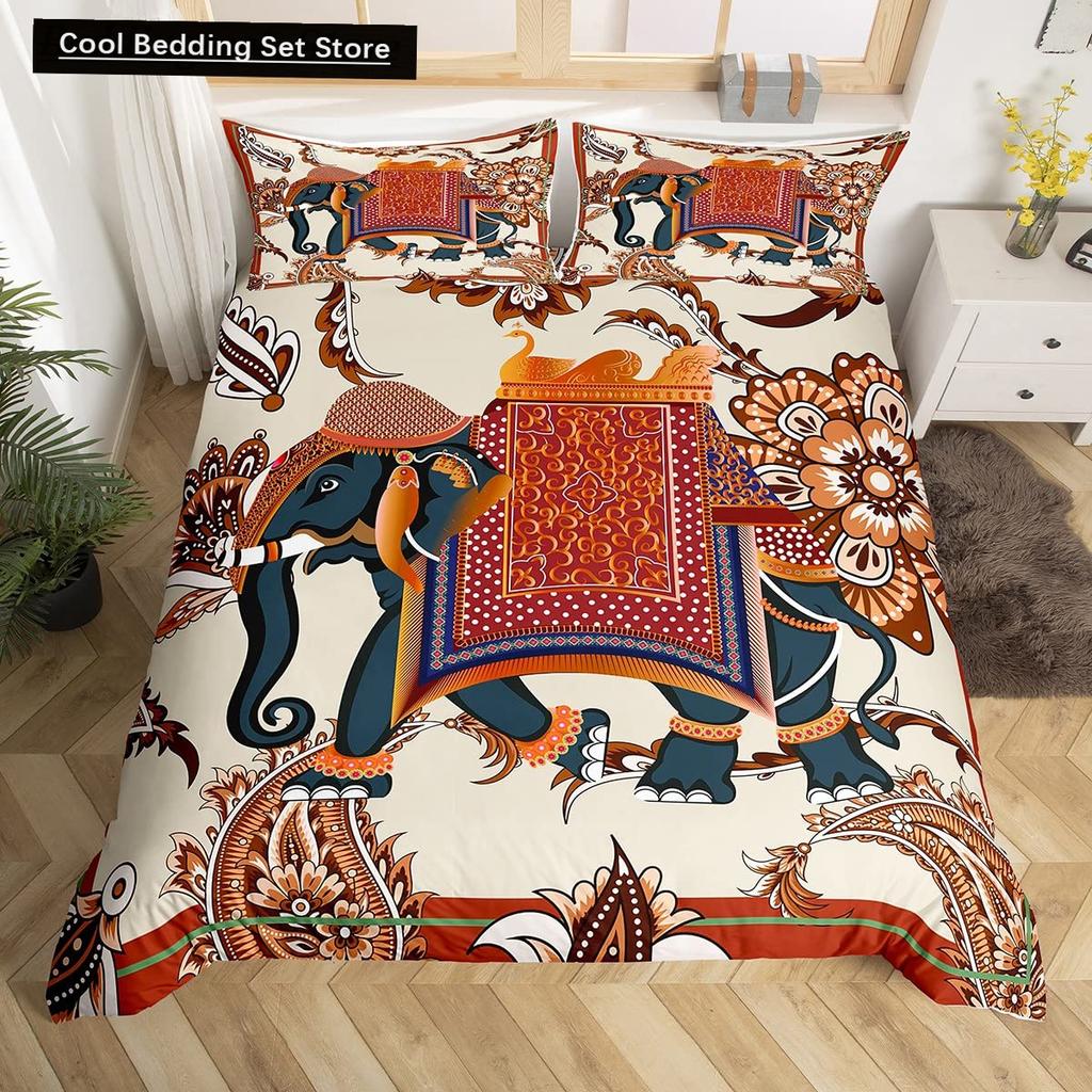 Tribal Ethnic Elephant Duvet Cover Exotic Style Bedding Set Boho Mandala Flower Paisley Quilt Cover Polyester Comforter Cover