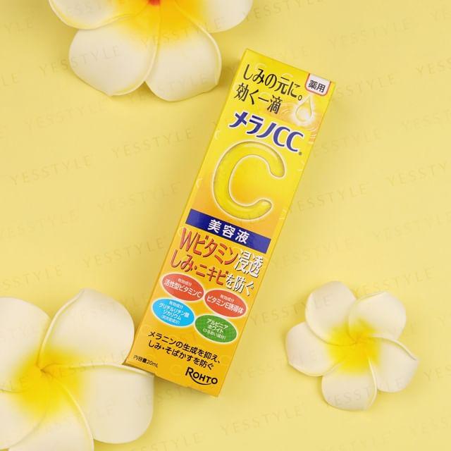 A medicated whitening essence containing the whitening active ingredient active vitamin C (ascorbic acid) for a clear, translucent complexion.