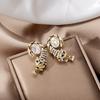 Premium Sense Cold Exaggerated Metal Pleated Geometric Earrings, Personalized Retro French Flower Peach Heart Earrings