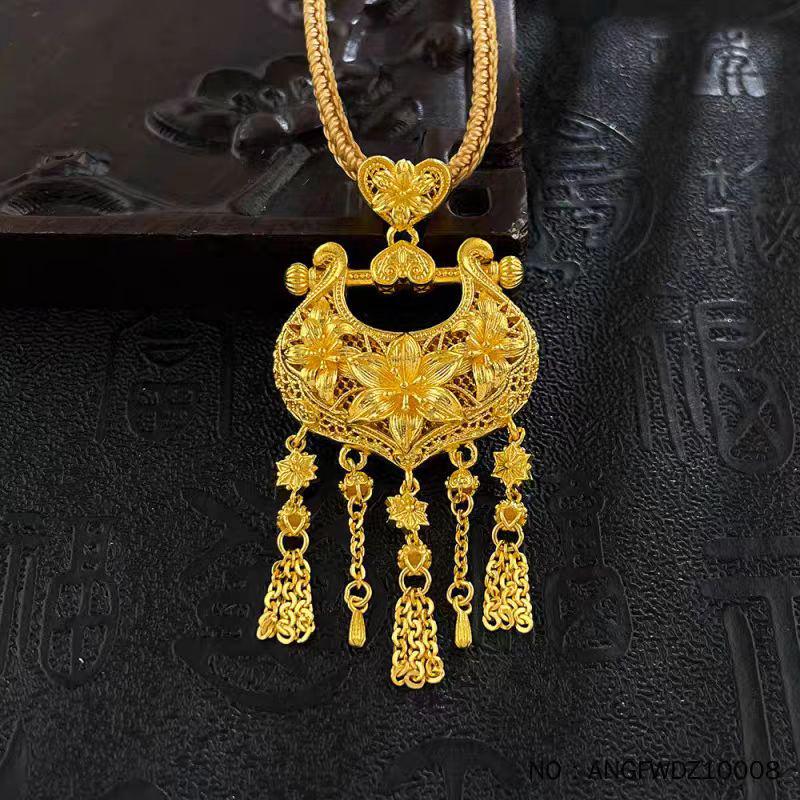 Ancient Style Lily Ruyi Auspicious Lock Pendant Necklace In Openwork Design: Chinese Blooming Wealth Jewelry