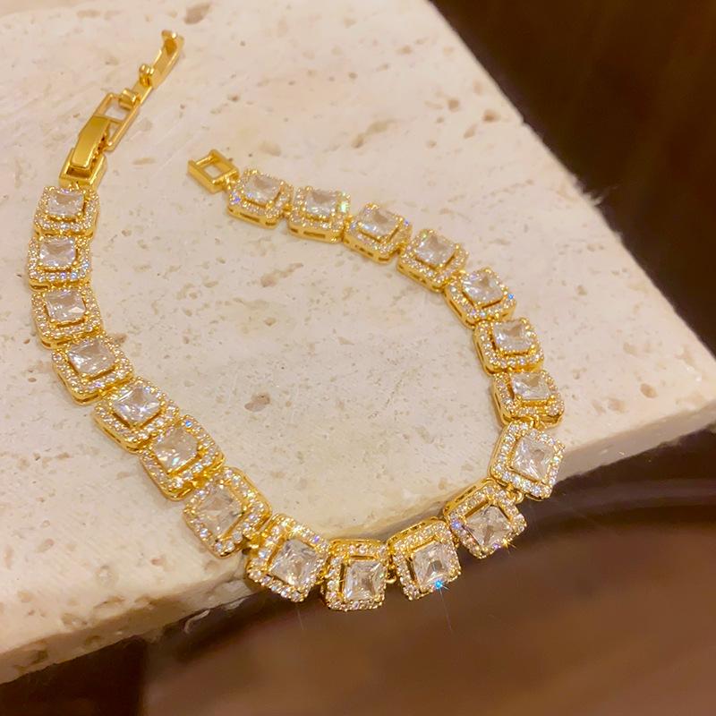 18K Gold Plated Zircon Square Bracelet - Elegant Korean Style Vintage Jewelry for Women