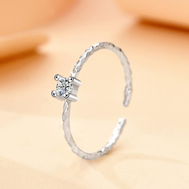 Korean Fashion S925 Sterling Silver Zircon Open Ring for Women