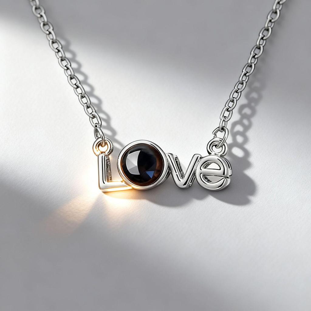 100 Languages 'I Love You' Projection Titanium Steel Necklace - European & American Style Women's Light Luxury