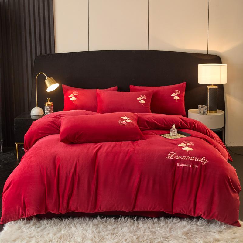 Plush Coral Fleece Winter Bedding Set: Thickened Velvet Duvet Cover, Flannel Bed Sheet, and Pillowcases