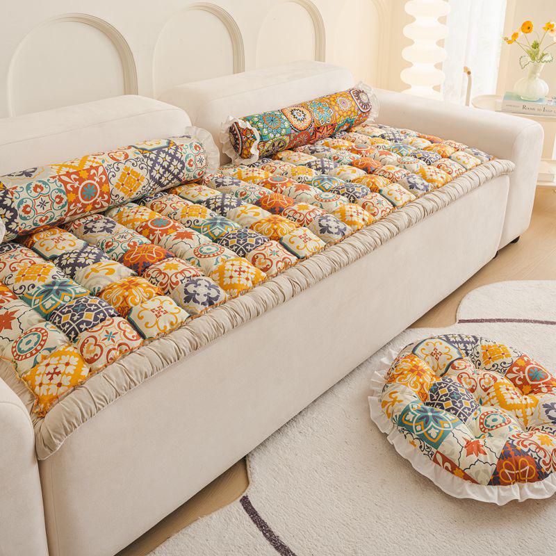 Thickened All-Cotton Four Seasons Non-Slip Sofa Cushion with High-End One-Piece Cover