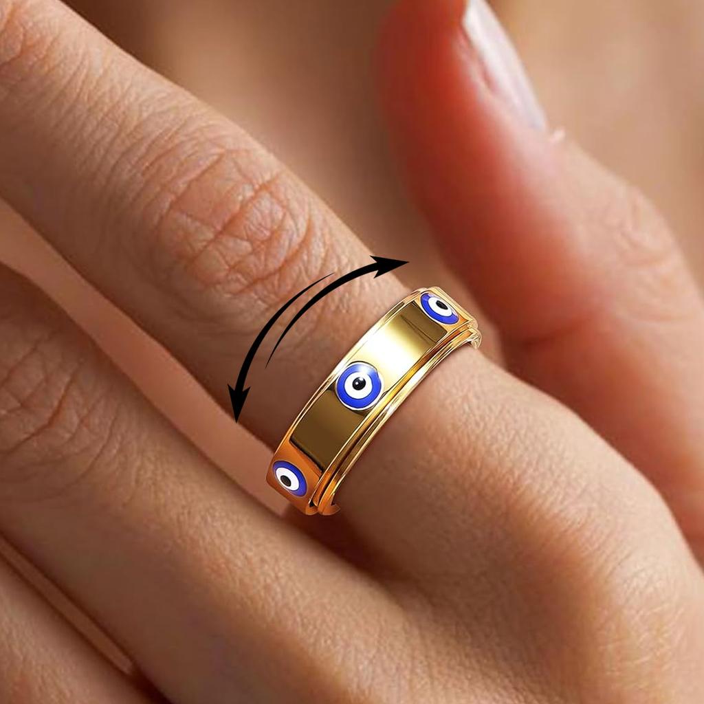 Evil Eye Anxiety Rings for Women GoldPlating Stainless Steel Spinner Fidget Ring Turkish Faith Protection Jewelry Luck Amulet