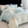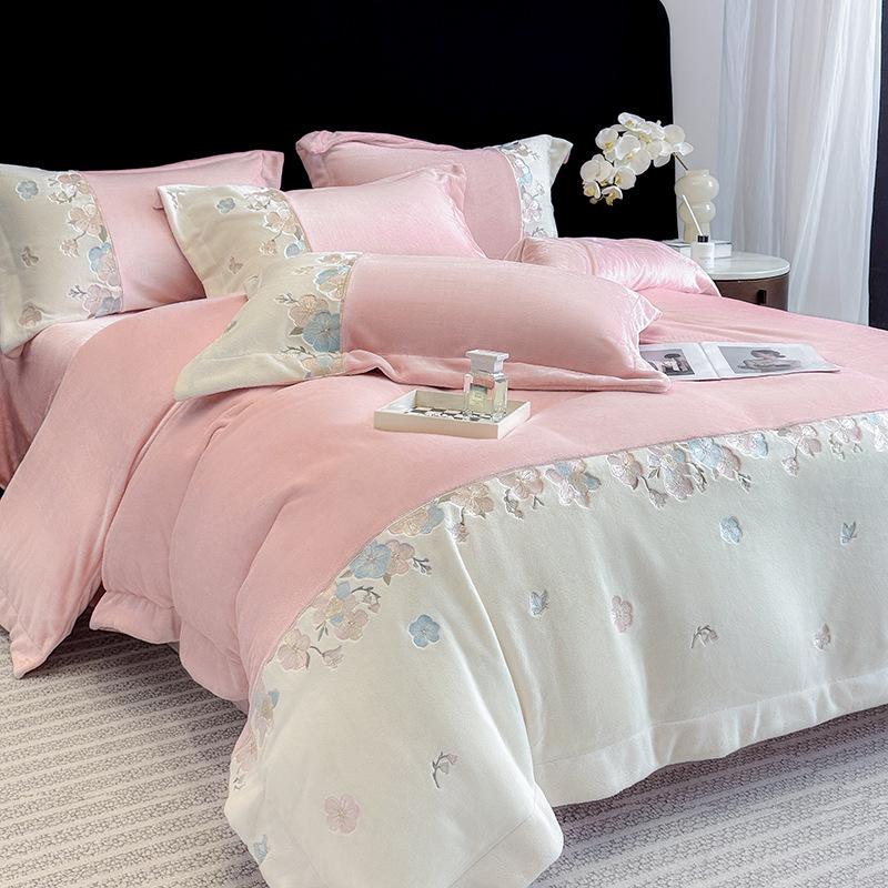 Embroidered Extra Thick Milk Velvet Four-Piece Winter Bedding Set—Duvet & Fitted Sheet, Full Matte Double Color