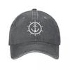 Nautical Captain Anchor Men Women Baseball Steering Wheel Distressed Washed Hat Casual Outdoor Running Golf Snapback