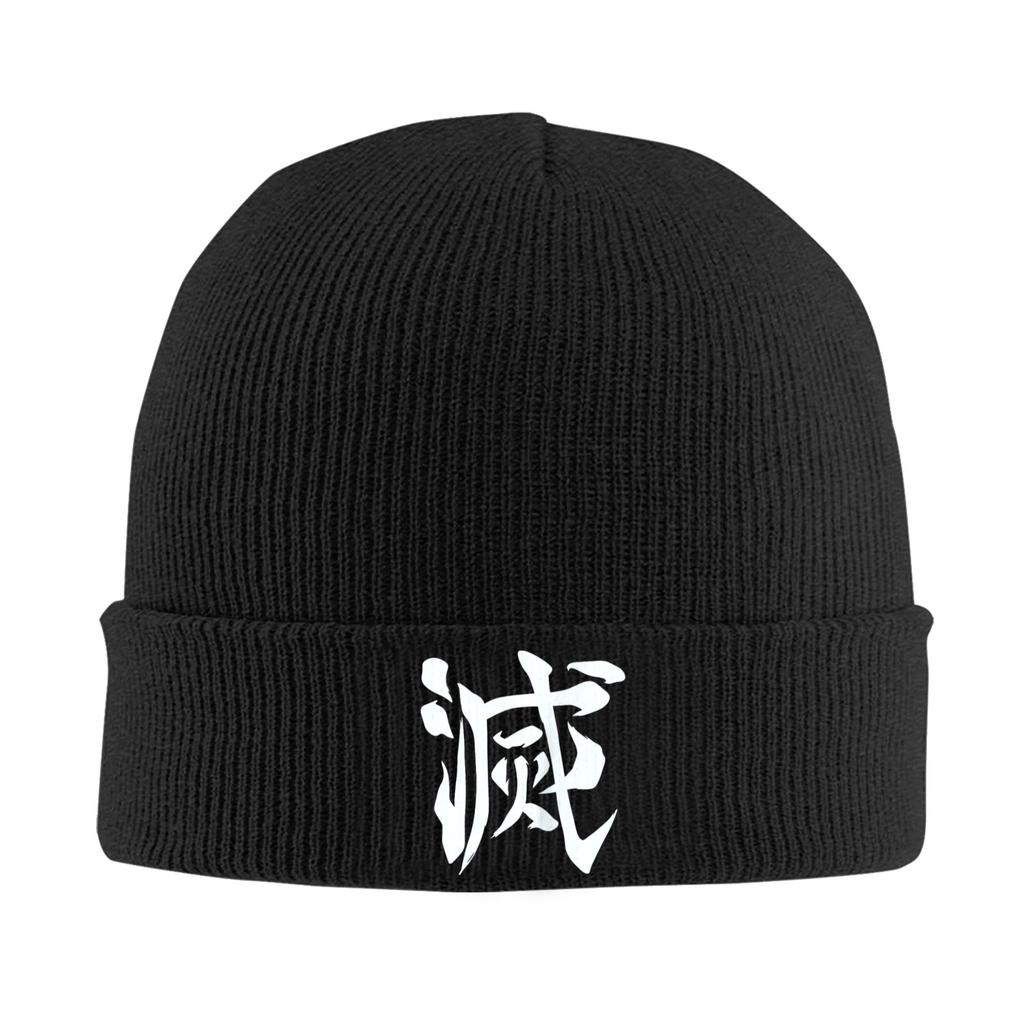 Adult Unisex Destroy Kanji Back Print Beanie Hats Fashion Knit Hat Winter Kpop Caps Design Elastic Bonnet Hats