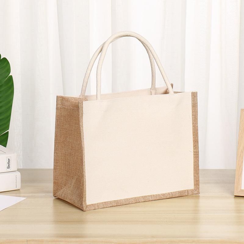Eco Friendly Reusable Jute Bag Interior Burlap Tote Bags Natural Linen Bags with Soft Cotton Handles and Laminated Interior