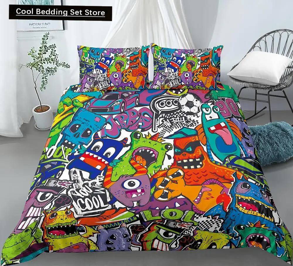 Bedding Set For Baby Kids Child 3D Cartoon Graffiti Crib Duvet Cover Pillowcase 2/3Pcs Polyester Quilt Cover King Queen Full