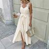 Strapless Long Dress, New Summer Floral Lace-wrapped Fitted Halter-line Slit Dress for Women