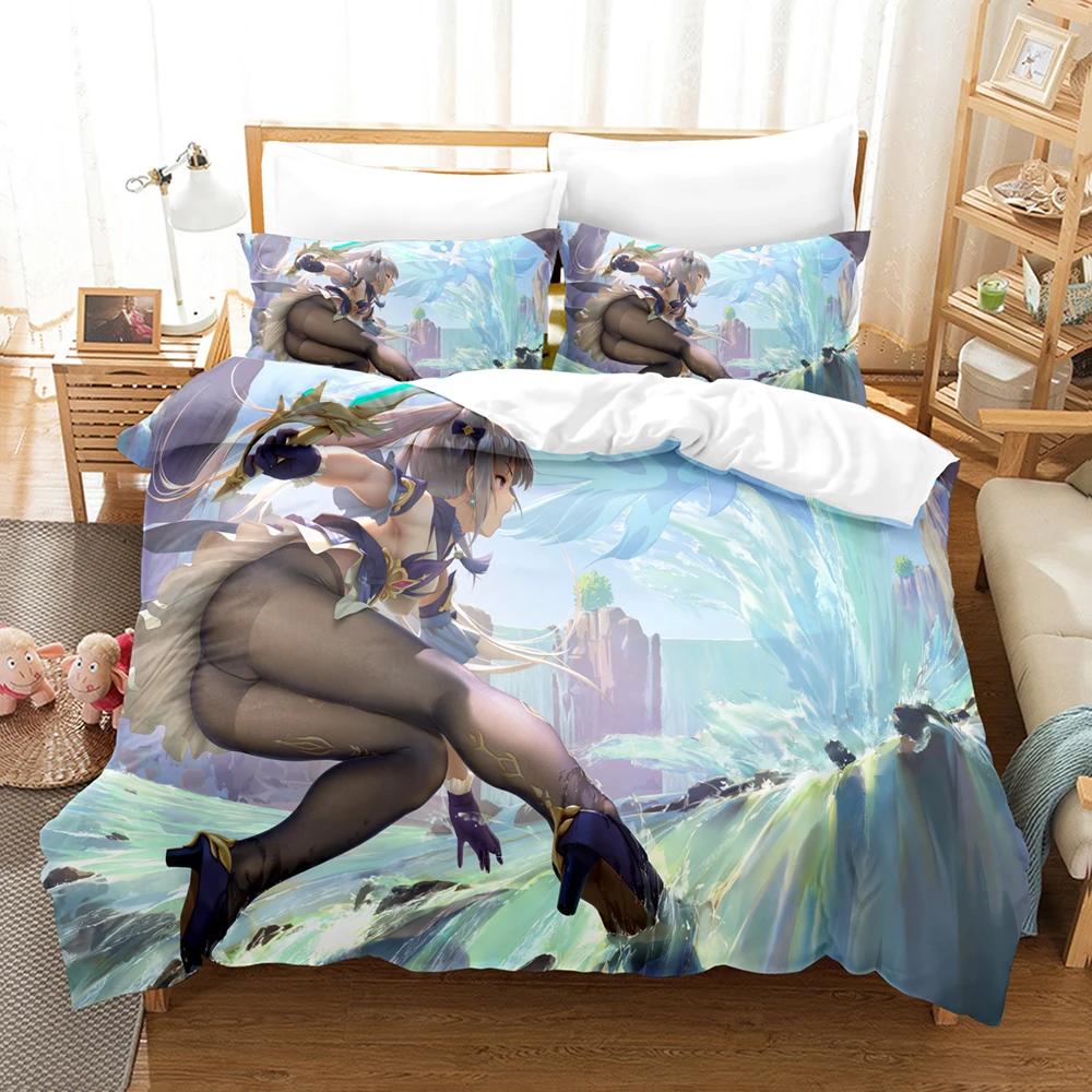 Genshin Impact New 3D Digital Printed Games Three-Piece Bedding Set With Winter Home Polyester Quilt Cover With Cartoon Pattern