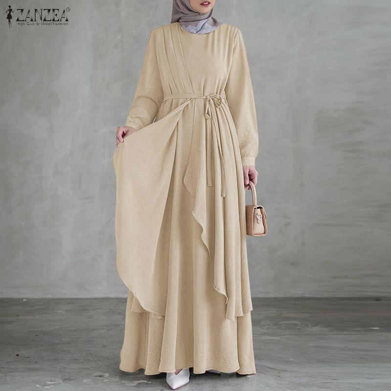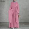 ZANZEA Women Casual Round Neck Long Sleeve Loose Muslim Dress