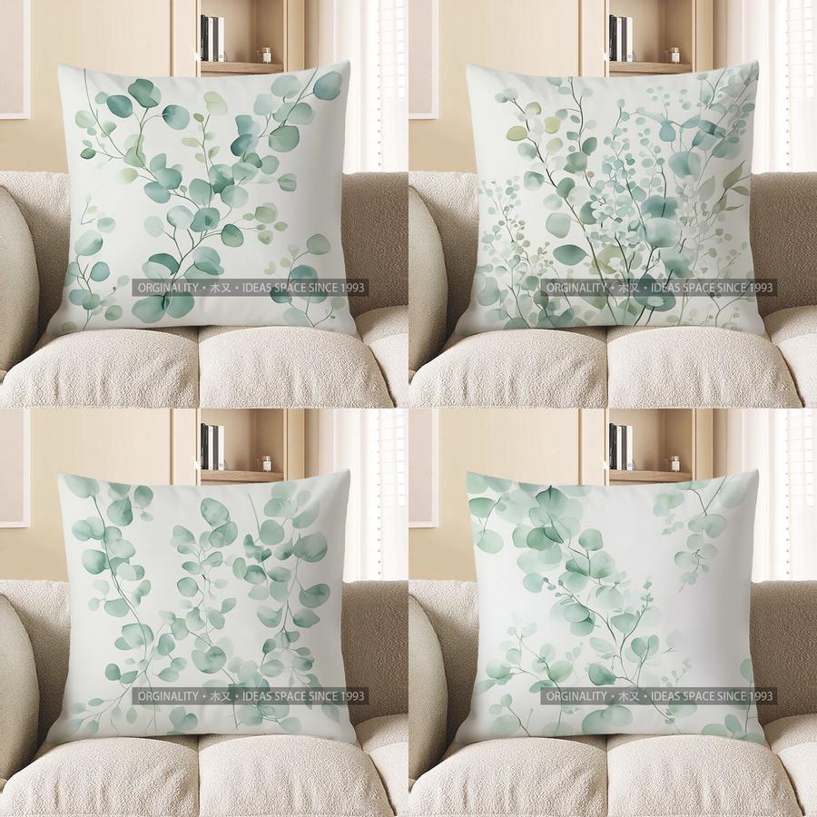 Home Decor Eucalyptus Leaf Pattern Throw Pillow For Home Pattern Cushion Cover Suitable For Sofa Bedroom Car Pillow Cover