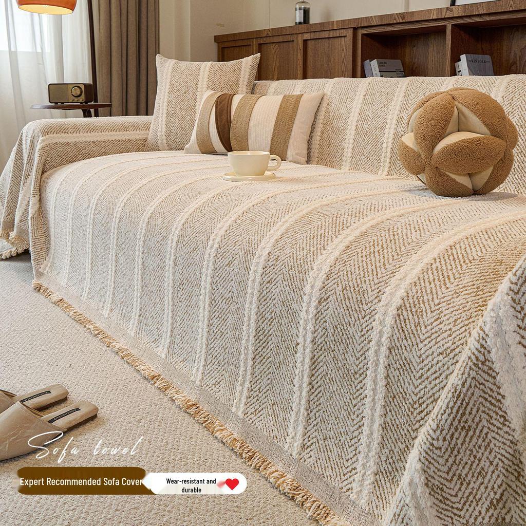 Mid-Century Minimalist Chenille Sofa Cover with Herringbone Pattern - Non-Slip, Universal Fit for Four Seasons