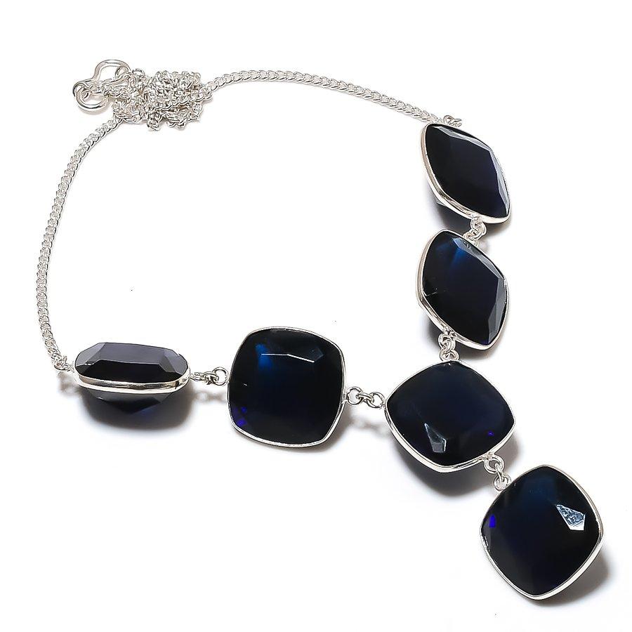 Natural London Blue Topaz Gemstone 925 Sterling Silver Jewelry Necklace 18" ASN-5913