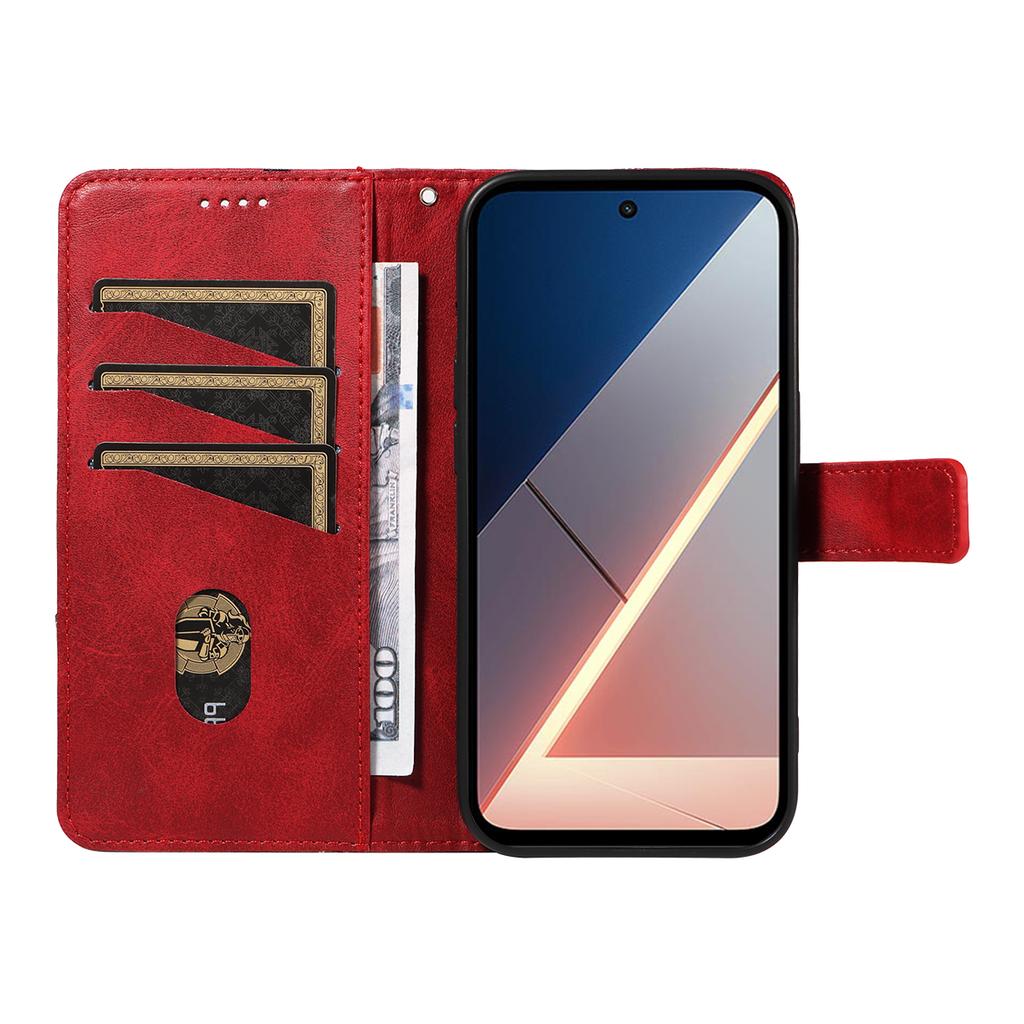 For Xiaomi Poco M7 4G (169mm) Leather Case Geometric Line Design Wallet Phone Cover with Wrist Strap