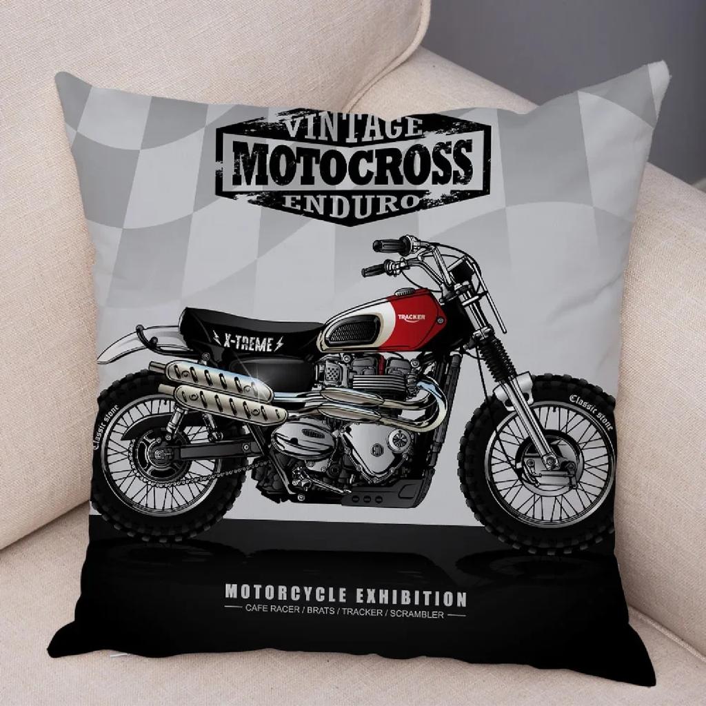 Ful Motorcycle Cushion Decor Vintage Style Bike Race Pillowcase Soft Plush Pillow Case for Sofa Home Car ,(6)
