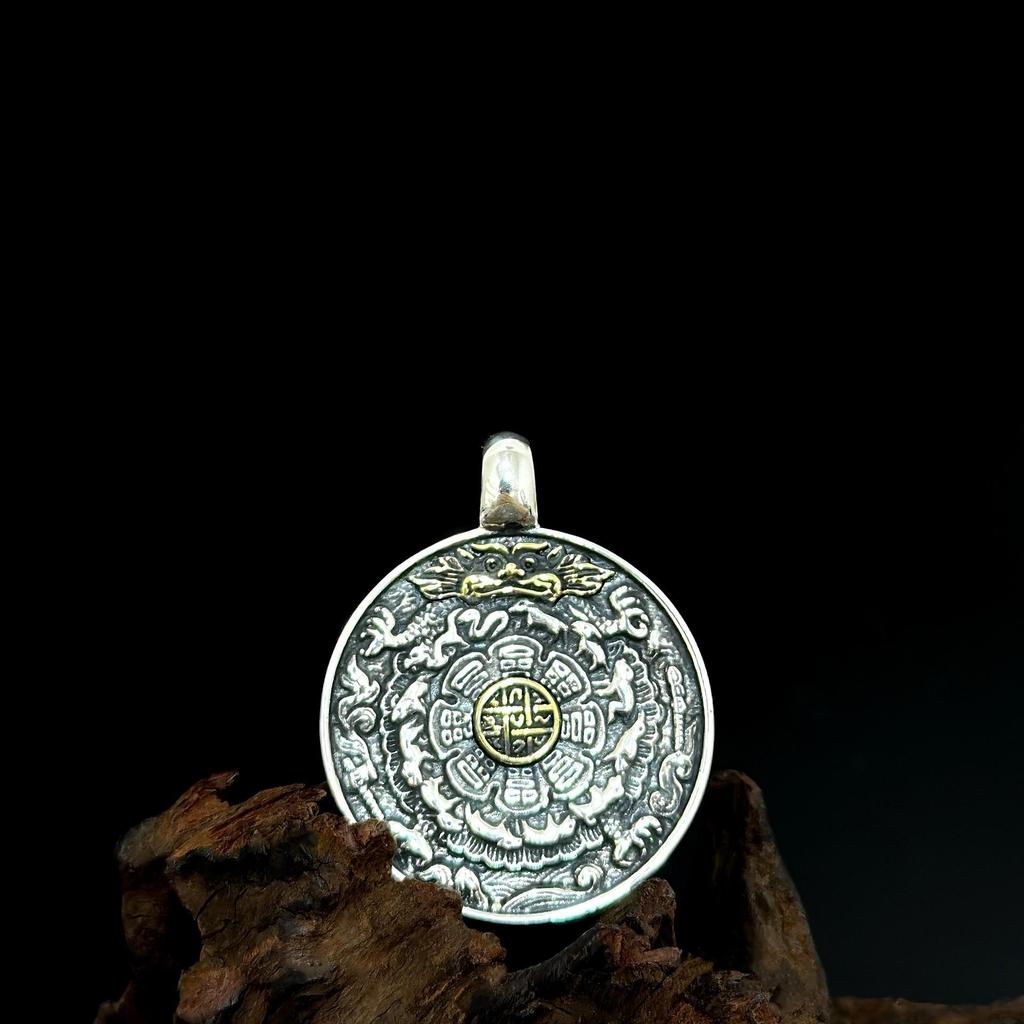 S925 Sterling Silver Double-Sided Yellow Wealth God Pendant - Ethnic Style Trigrams Amulet for Men