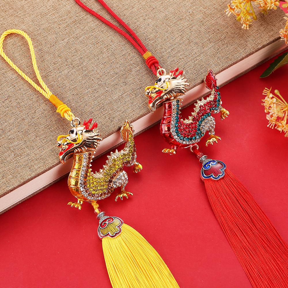 Diamond-Studded Auspicious Dragon Pendant with Red and Gold Tassel