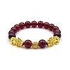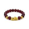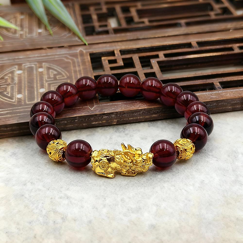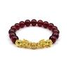 Gold-Plated Retro Pixiu Bracelet with 10mm Red Pomegranate Beads - Wealth Attraction Elastic Design
