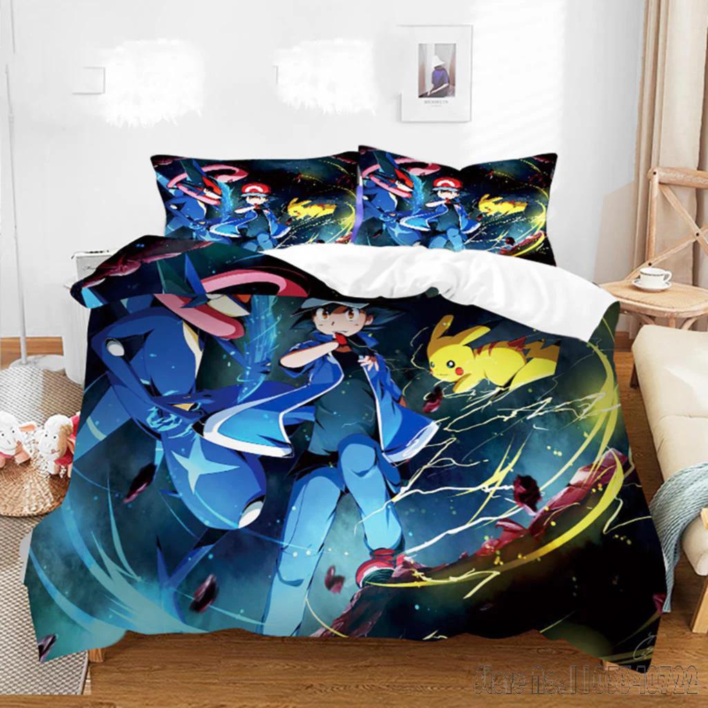 Anime Popular Pokemon Pillowcase Pikachu Bedding Set Baby Duvet Cover Sets Bedclothes Twin Single King Kids Adult Gift