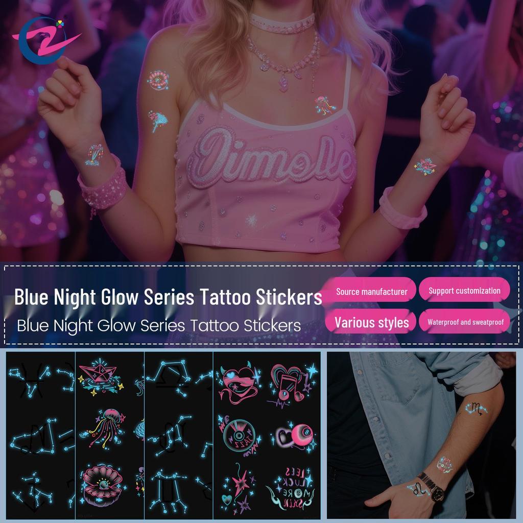 Blue Luminous Tattoo Stickers - Glowing Constellations for Music Festivals & Parties