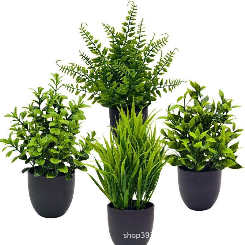 4-Piece Set of Artificial Green Plants: Indoor/Outdoor Decorative Plastic Potted Plants