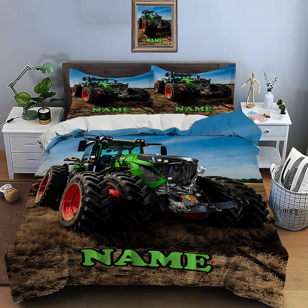 Custom Name Quilt Cover Tractor Bedding Set 3 Pieces Setting Bed King Size Pillowcase Adult Bed Cover Bedroom Bed Set
