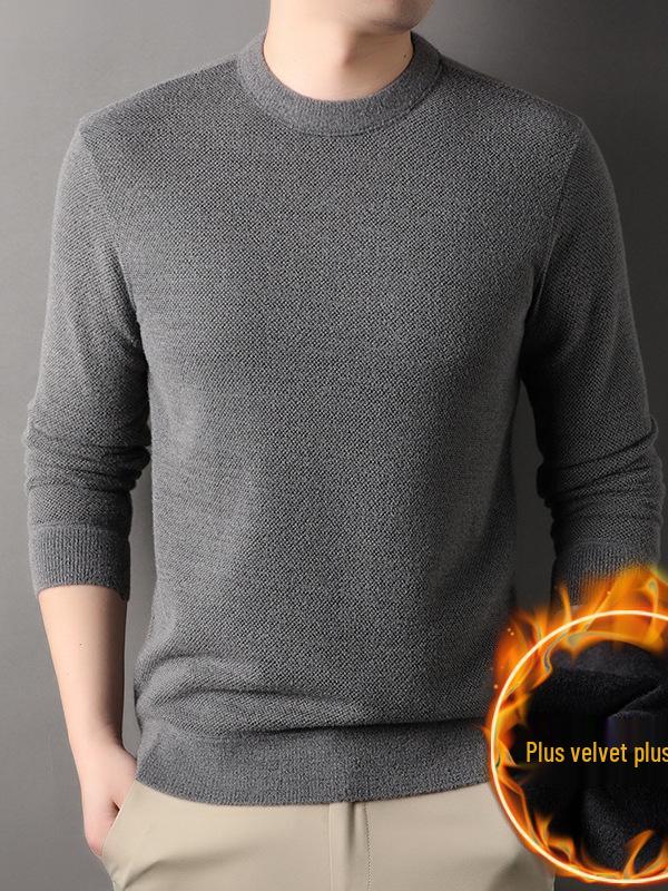 Stay cozy and stylish with this men's warm knit sweater, perfect for autumn and winter. Designed for the middle-aged, this piece features a loose fit and round neckline, offering comfort and a relaxed appeal. The long sleeves provide additional warmth, while the solid color gives it a classic and versatile look. Made with a polyester material and a fluffy velvet touch, this sweater's chemical fiber blended fabric ensures softness and durability. Ideal for casual wear during the cooler months.