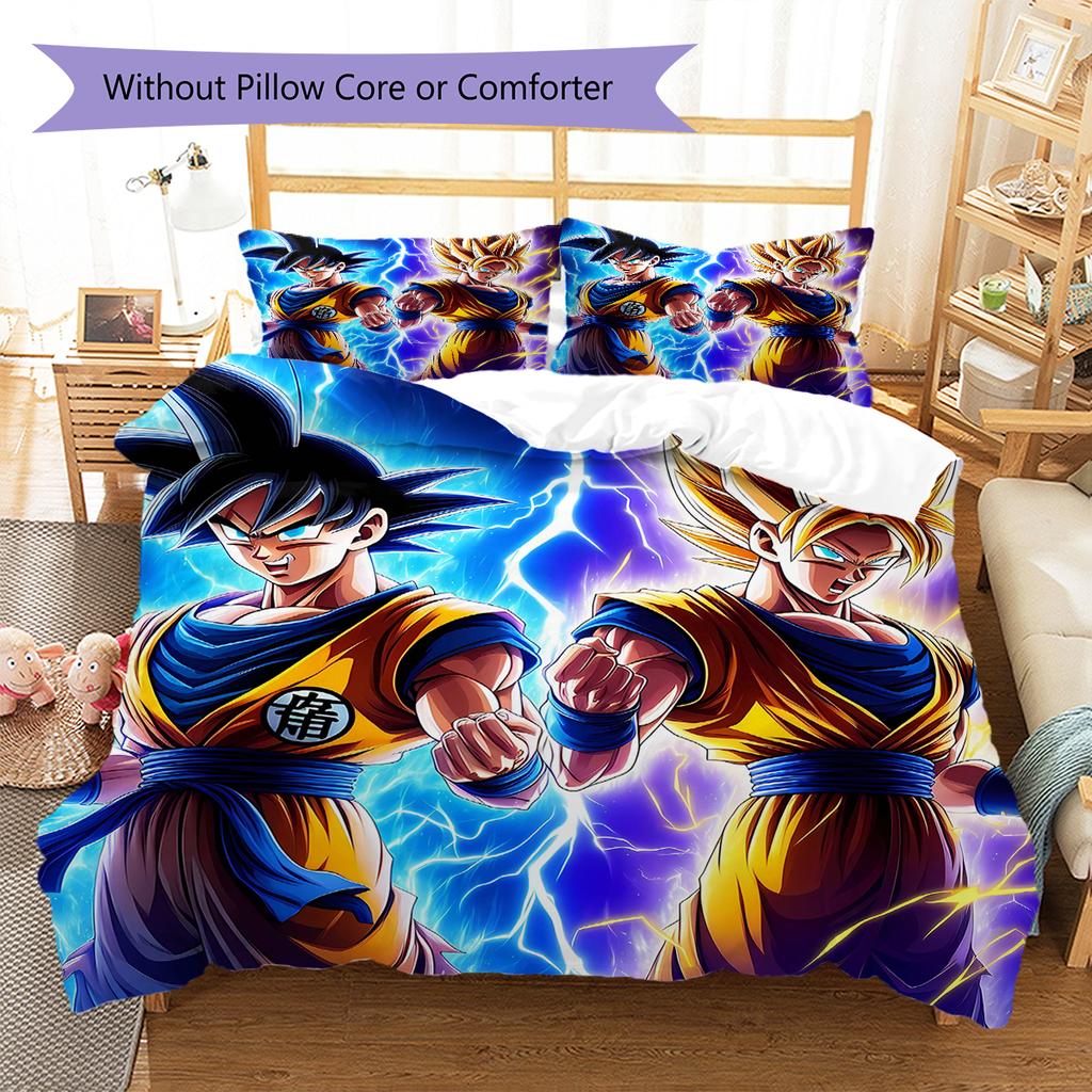 Son Goku Pattern Bedding Quilt Set Quilt Cover Pillowcase Home Decoration Gift (1 * Duvet Cover + 2 * Pillowcase, Without Core)