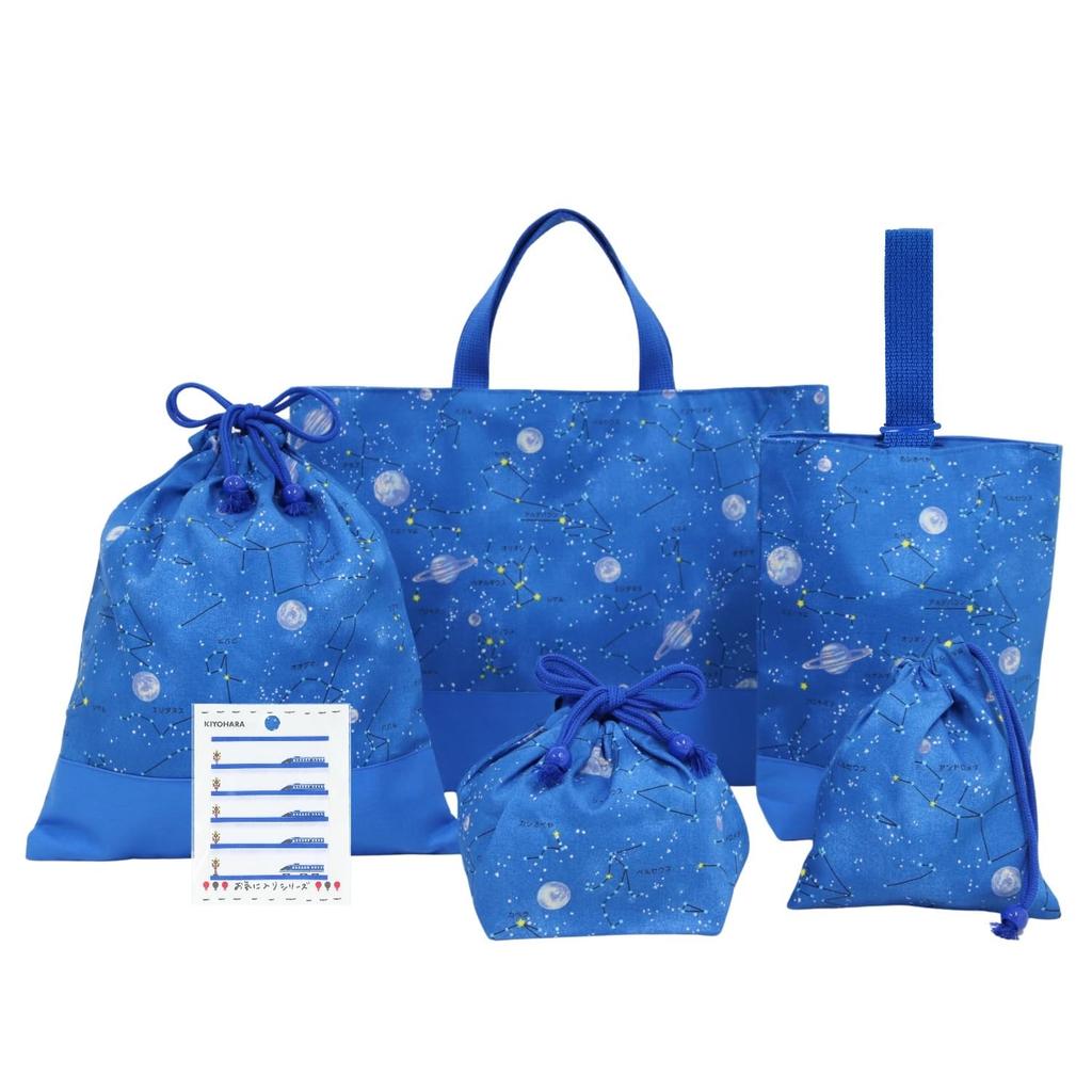 KIYOHARA Boys' Lesson Bag, Indoor Shoes Bag, Gym Clothes Bag, Lunch Bag, Cup Bag, Name Stickers, Constellation Design, Blue, NNF17-S5