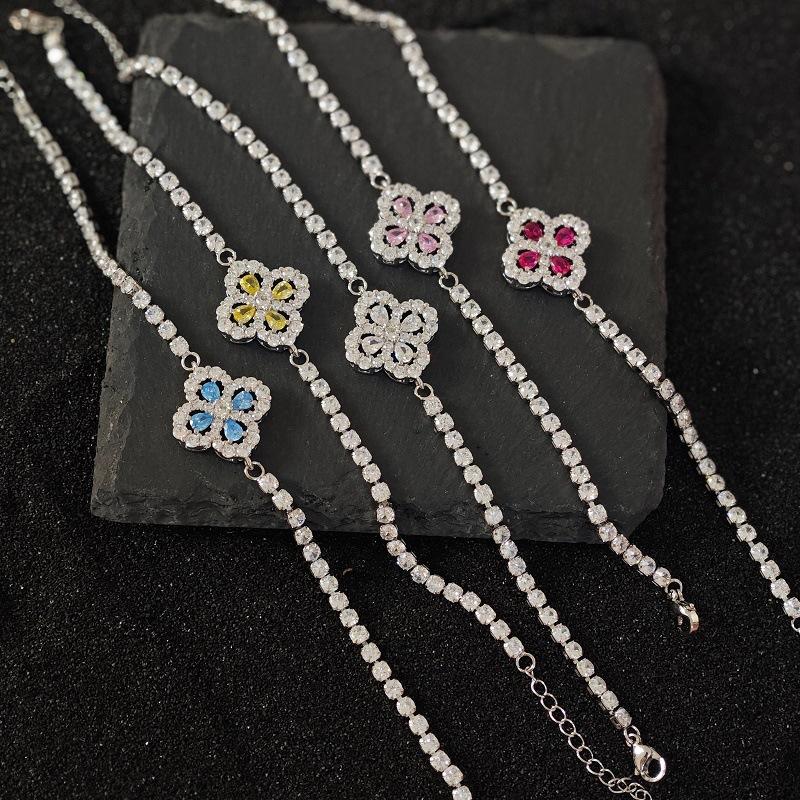 Bracelet Loop Four-Leaf Clover Bracelet Women'S Light Luxury Niche Full Of Diamond Snowflake Hand Jewelry Cold Wind High Sense