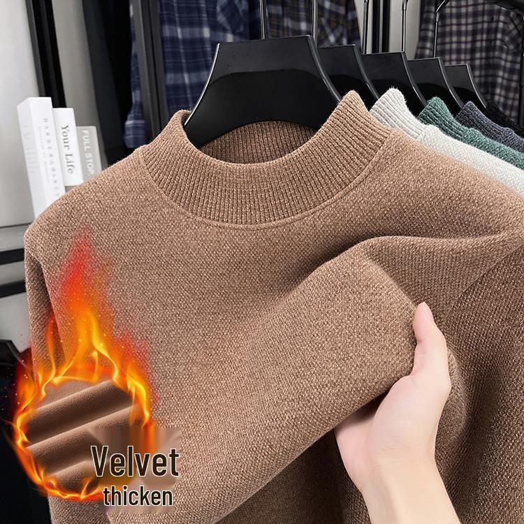 Men's Autumn/Winter Chenille Knit Half-High Neck Velvet-Enhanced Base Layer Sweater
