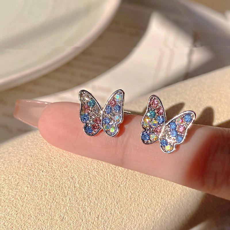New Colorful Zircon Small Butterfly Earrings for Women Simple Fashion Personality Summer Accessories Party Birthday Gift