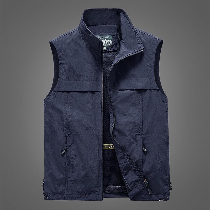 This versatile outdoor vest is designed for middle-aged men who enjoy photography and fishing during the spring and autumn months. Its lightweight construction and thin outerwear thickness make it ideal for casual wear, while the loose fit ensures comfort throughout the day. The vest features a stand neckline and a convenient zipper closure, providing both style and functionality. Made from a durable nylon material with a chemical fiber blended interior, this solid-patterned vest combines practicality with a sleek design, making it a perfect addition to any workwear wardrobe.
