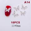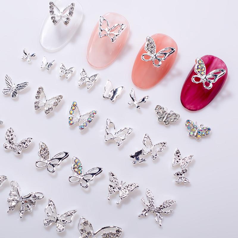 10 Pcs Butterfly Alloy Nail Charms 3D Butterfly Zircon Diamond Rhinestone Nails Jewelry Diy Nail Art Decoration Accessories